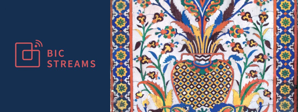 Image credit (website & poster): Detail of the cut tile mosaic decoration in the Badshahi Ashurkhana in Hyderabad, 1592, tiles c.1612. PC: Arthur Millner